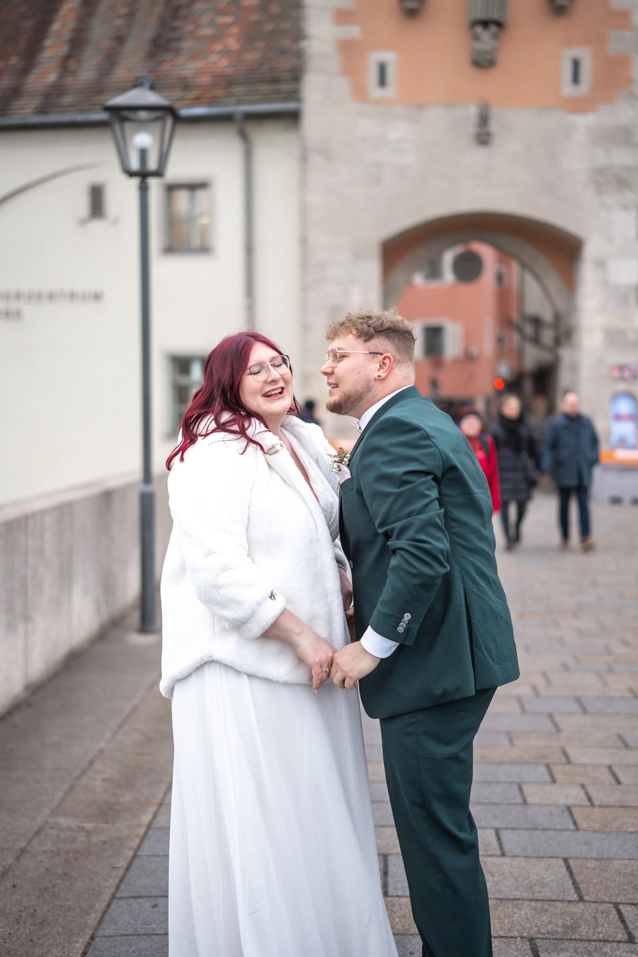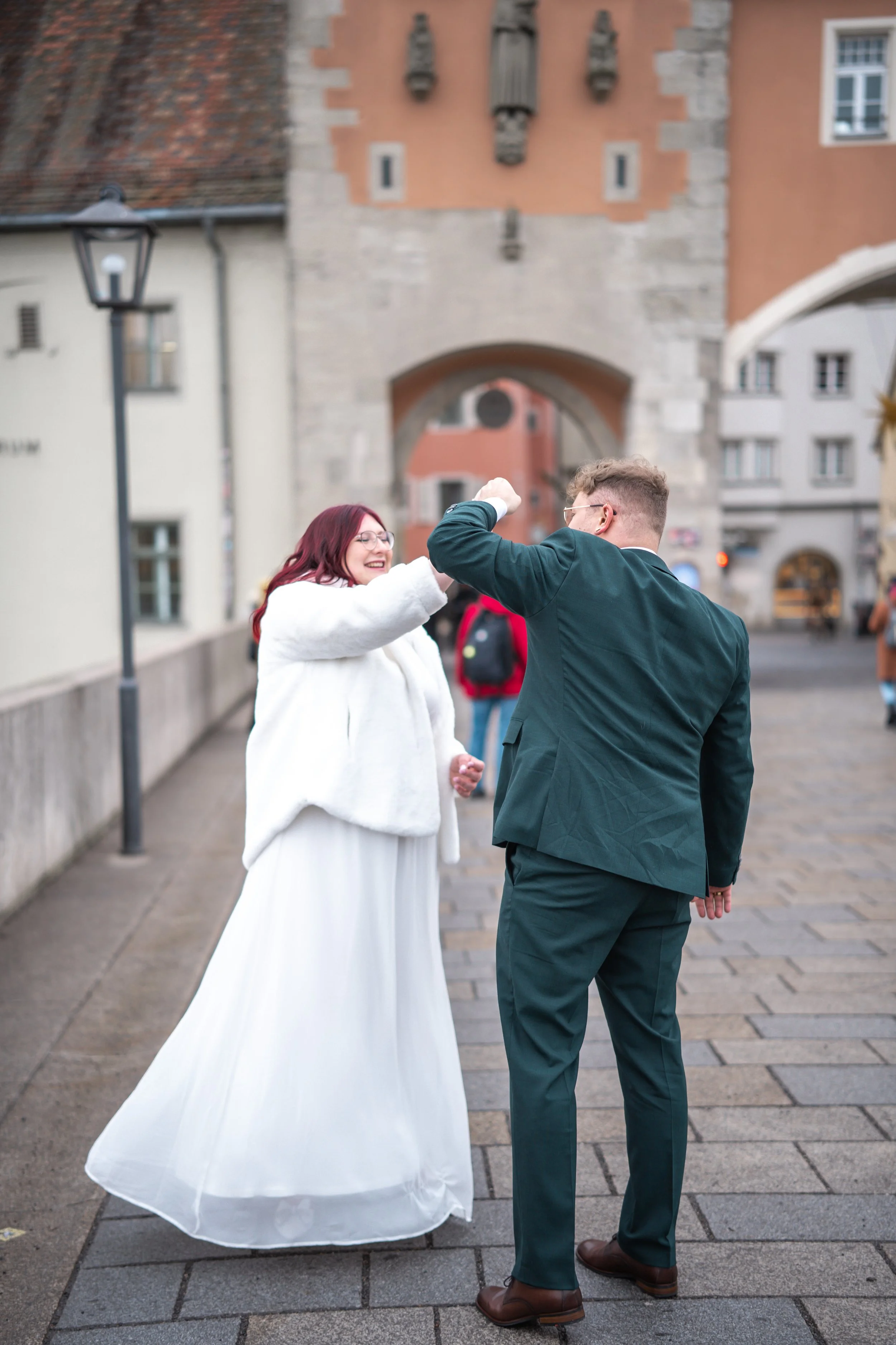 Ein kalter Wintermorgen. Tolle Weihnachtsdekoration. In der Regensburger Altstadt ist es einfach zu jeder Jahreszeit schön zu heiraten. Am 13.12.2025 haben sich Iris und Sebastian das Ja-Wort gegeben. Ich durfte die beiden für das Brautpaarshooting und die standesamtliche Trauung im Alten Rathaus begleiten. Es war eine super Stimmung, emotional und trotzdem locker! Gefeiert wurde anschließend im Brauhaus am Schloss in Regensburg. Vielen Dank euch.